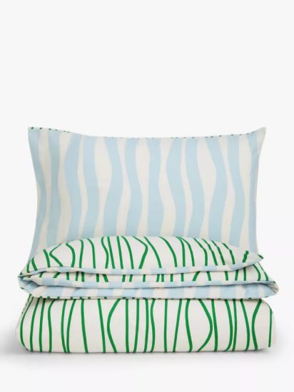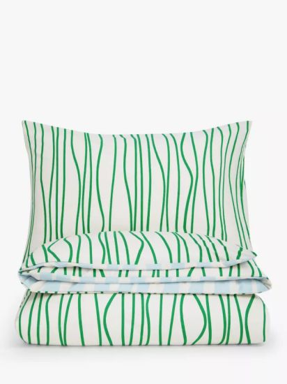 - The 100% cotton construction of this ripple-striped bedding allows you to experience all the breathable benefits of a material renowned for its temperature-regulating qualities, so you can sleep soundly night after night. A bright green stripe reverses to a soft duck egg blue for versatility.
